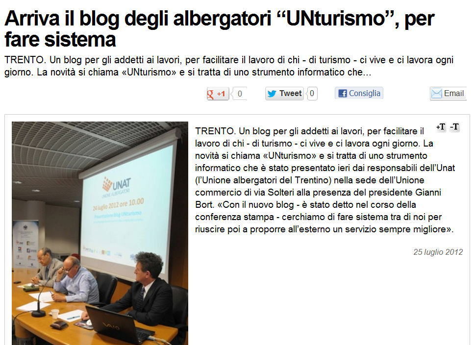 Trentino 25 luglio 2012 Blog UNAT(554Kb) Trentino 25 luglio 2012 Blog UNAT - Unione Albergatori |